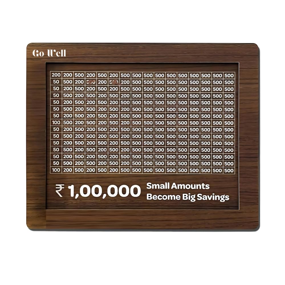 This ₹1 Lakh Savings Board is built to last. Made from high-quality wood, it's sturdy enough to handle daily use without bending or tearing. Unlike flimsy paper charts, this solid board stays intact as you mark your progress from ₹0 to ₹1,00,000. Whether you're using a pen, marker, or sticker, the smooth surface holds up beautifully — making it a reliable and long-lasting companion on your savings journey.